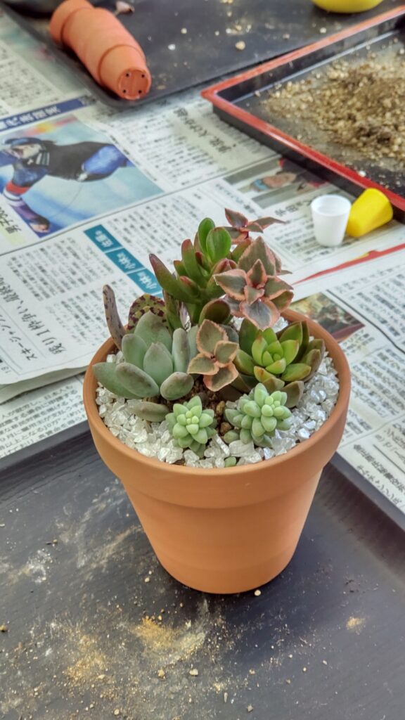 寄せ植え体験では、お好きな鉢や多肉を選んで、自分だけのオリジナルアレンジが楽しめます。